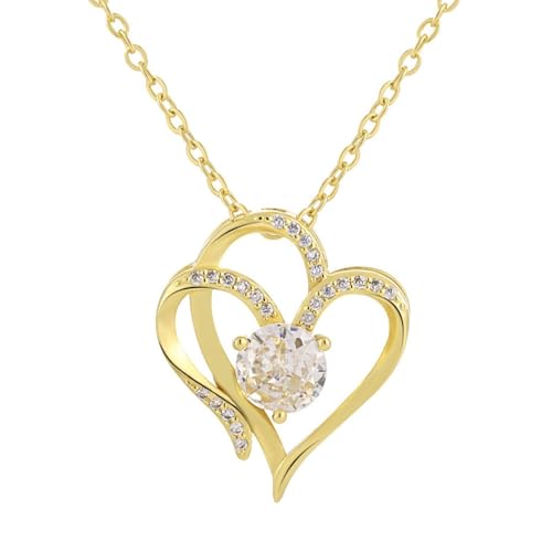 LAVUMO Halsband för Dam Sterling Silver Hjärta Hänge Halsband Rose Guld Cubic Zirconia Smycken Presenter till Flickvän Fru Mamma Hennes Födelsedag Jubileum Jul Mors Dag (Guld-04-april)