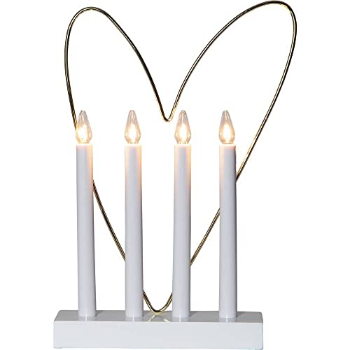 Eglo LED-ljusbåge, jul med 4 glödlampor, fönsterljusstakar i vitt med dekorativt hjärta i mässing, ljusbåge med kabel, E10, varmvit