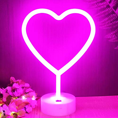 Niwwin Rosa neonskylt i form av ett hjärta, kärlekshjärtformad LED neonbordslampa, dekorativ neon, batteri- eller USB-driven, dekorationsneon för älskare, restaurang, dejting, stämningsbelysning, bröllopsfest