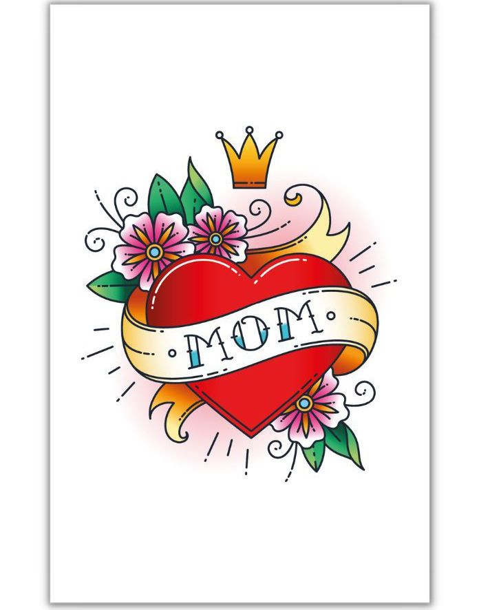 Tillfällig Tatuering med Dekorerat Hjärta och "MOM" Text