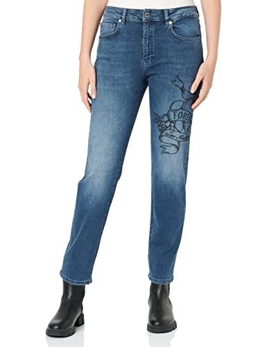 Love Moschino Dam svart triblend denim personlig med broderi tatuering effekt hjärta casual byxor, Blå denim, 32 SE