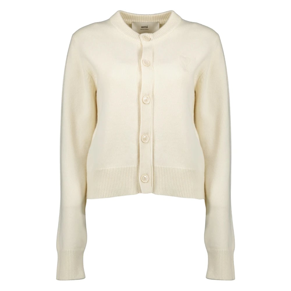 Ami Paris, Stickade Tröjor , Dam, L, Kashmir, Vit Hjärta Cardigan Ull Kashmir