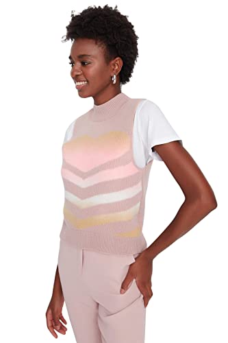 TRENDYOL Dam rund hals hjärta vanlig stickad väst tröja, rosa, M, ROSA, M
