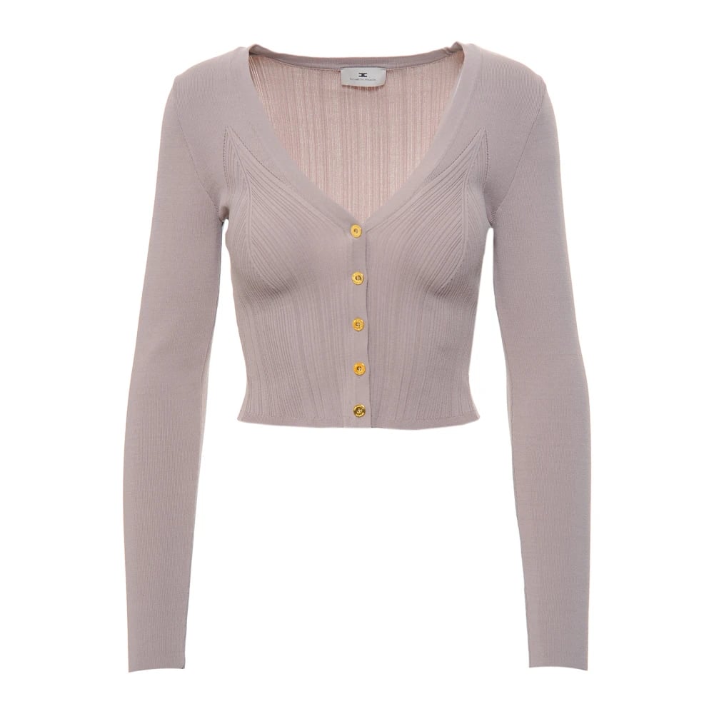 Elisabetta Franchi, Stickade Tröjor , Dam, M, Viskos Micro-Kofta med Hjärta
