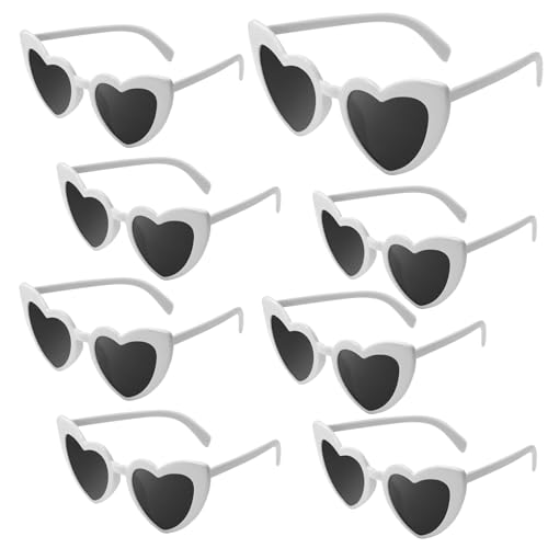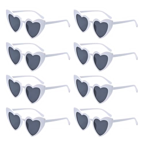 Rongxze 8 par hjärtglasögon, vintage hjärta solglasögon, UV400 och UV-skydd, hjärtformade solglasögon för bröllop, resor, shopping, födelsedag, karneval, fest (vit)