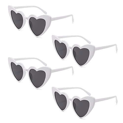TSHAOUN 4-Pack Vintage Hjärtformade Solglasögon för Kvinnor - 70-Tals Hjärtform, för Flickor Shopping Resor Fest Utomhus, Vitt, En Storlek