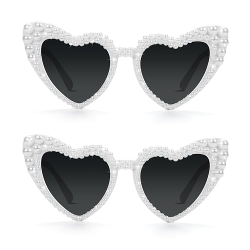 FloralGrace 2-delat hjärta solglasögon hjärtformade, hjärtpärlor, hjärtglasögon, retro hjärtglasögon med vit pärldesign, Cateye solglasögon kvinnor, vintage hjärtformade solglasögon
