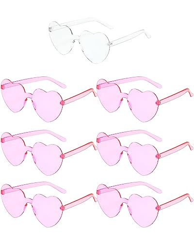 Dwenarry hjärta fest solglasögon, 8 par genomskinliga godisfärger hjärtformade ramlösa solglasögon, en storlek passar de flesta för olika fester