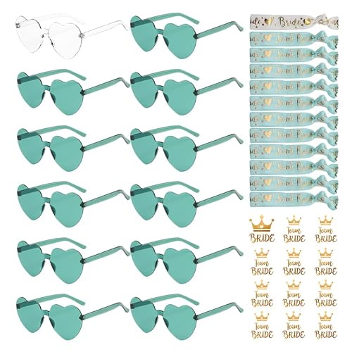 Festglasögon hjärta solglasögon, 12 bride to be hjärta solglasögon och 12 team bride tatueringsklistermärken, party solglasögon team bride, hippie hjärtformade glasögon, JGA festglasögon och JGA