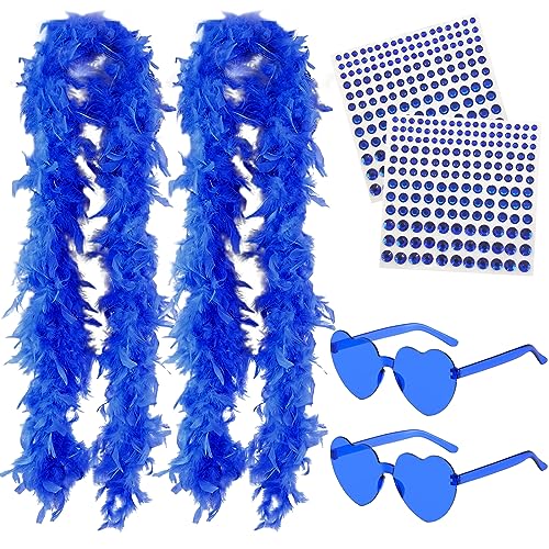 BDSHUNBF 4 st fjäderbåtar, maskeradkläder och hantverk fjäderboa, hjärtformade solglasögon, festtillbehör för dans bröllop halloween kostym dekoration cosplay