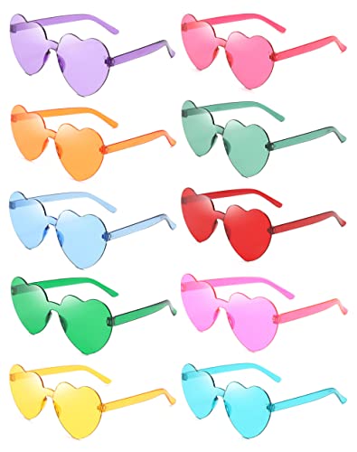 SelfTek Hjärtglasögon, 10 st ramlösa kärlek hjärtformade solglasögon färgade festglasögon multipack färgglada mode funky glasögon för kvinnor män barn