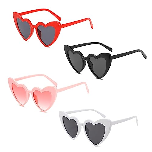 MIVAIUN 4 par hjärtformade solglasögon, röda kärlekshjärta solglasögon, vintage kattögon kärleksglasögon, 70-tals solglasögon, fin klädstil färgglada glasögon för sommarfest, UV400 (röd)
