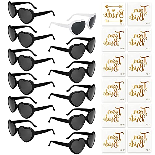Hjärta solglasögon 24 st glasögon fest bröllop och klistermärken för brudteam tatueringar, singel brud team hjärtformade solglasögon set för fest, bröllop, karneval, halloween