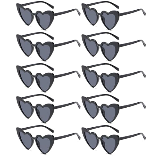 Augesak retro hjärta solglasögon, 10 stycken hjärtglasögon svarta, hjärtformade partyglasögon, solglasögon bröllop, JGA solglasögon kvinnor, svarta hjärtglasögon för fest, halloween, jul, bröllop