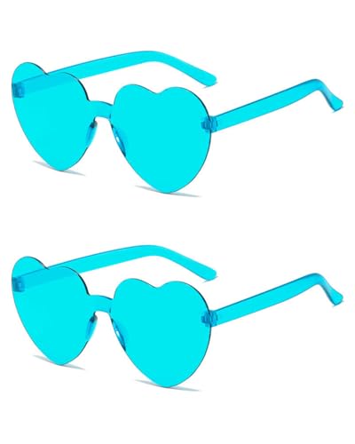 QLEUIFT Ramlösa Hjärta Solglasögon 2 st Hjärtformade Solglasögon, Vintage Hjärtformade Glasögon, 90s Heart Hippie Glasögon, För Party, Bröllop, Karneval, Halloween, Blå sjö
