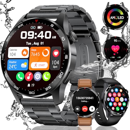LIGE Smart klocka för män med Bluetooth-samtal för Android iOS, 400 mAh, sport, smartklocka, herr, 3 armband för smartklocka, herr, hjärtfrekvens, hälsa, monitor