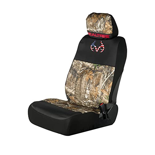 Realtree Universella främre och bänksätesskydd, vatten- och smutsbeständigt, kamouflage-sätesskydd för bil, lastbil och SUV, amerikanskt hjorthorn (Realtree Edge), låg rygg (enkel)