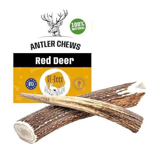 Hjorthorn för hundar | Naturlig tandvård | Långvarig tuggning | Ultra-hållbart naturligt horn | Rik på mineraler | Splittras ej (SIZE XL Hundar från 30 till 45 kg)