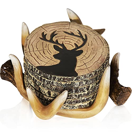 Hjorthorn underlägg – 6 rostfria underlägg i full storlek för timmerstuga dekor – jaktdekor, inredning av hjorthorn