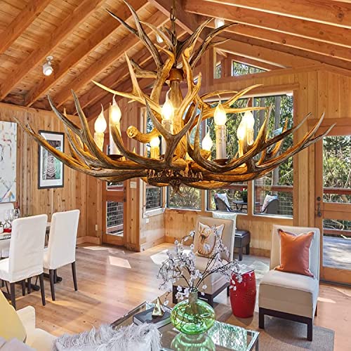 Antler Ljuskrona Belysning, 8 lampor 14 Antlers Stor Resin Hjorthorn Antlers Ljuskrona, Retro Country Style Hjorthorn Ljuskrona med E12 Base, Antler Lampa för Kaféer, Barer, Kök