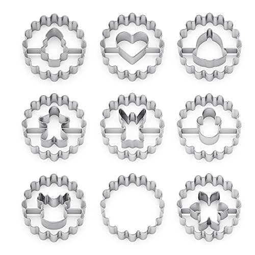 MIUTME Set med julkakor, 9 delar julkakor kaka skärare rostfritt stål – julgran, hjärta, vinkel, hjorthuvud, snöflinga, boll, pepparkaksgubbe för gör-det-själv bakning