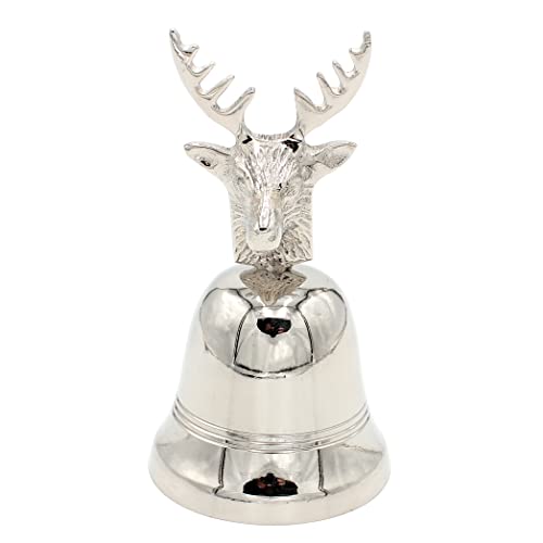 Dekohelden24 Klocka, bordsklocka av aluminium med hjorthuvud av metall i silver, mått H/Ø: ca 12,5 x 6,5 cm, 12,5 cm