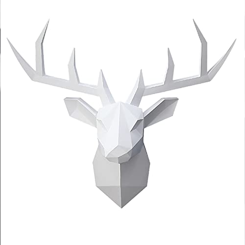 XYQXYQ Geometrisk hjorthuvud väggskulptur - modern hjorthornstaty för vardagsrum vägg - vit harts djur huvuddekoration