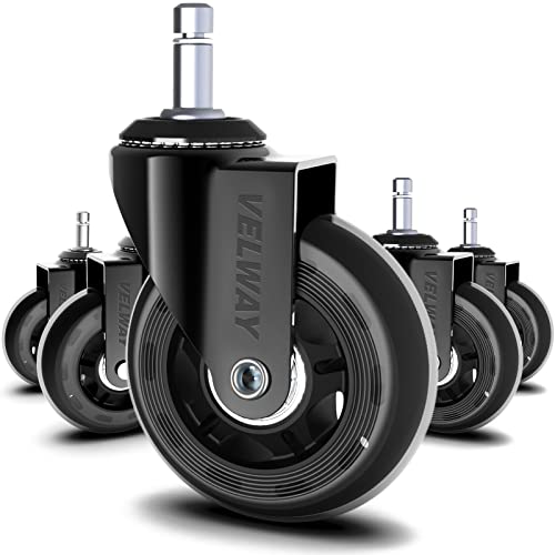 Velway 5 stycken 11 x 22 mm universella hjul för kontorsstol 2,5 tums roterande stolshjul tysta gummi reservhjul kontorsstolshjul svart
