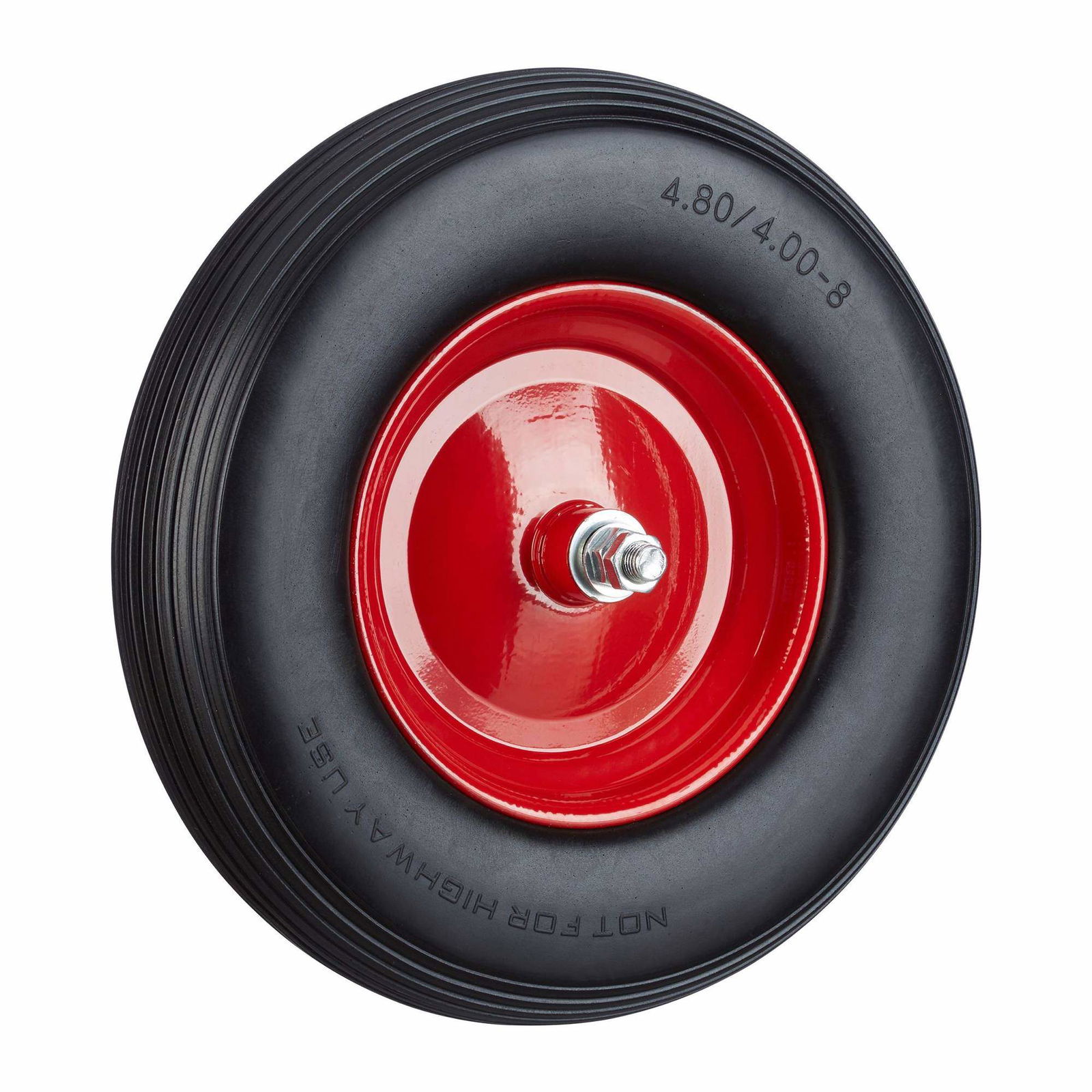 Relaxdays, svart skottkärra hjul massivt gummi med axel, 4,80 4.00-8 gummihjul, punkteringssäker, 100 kg lastkapacitet reservhjul, röd, 10022852_46
