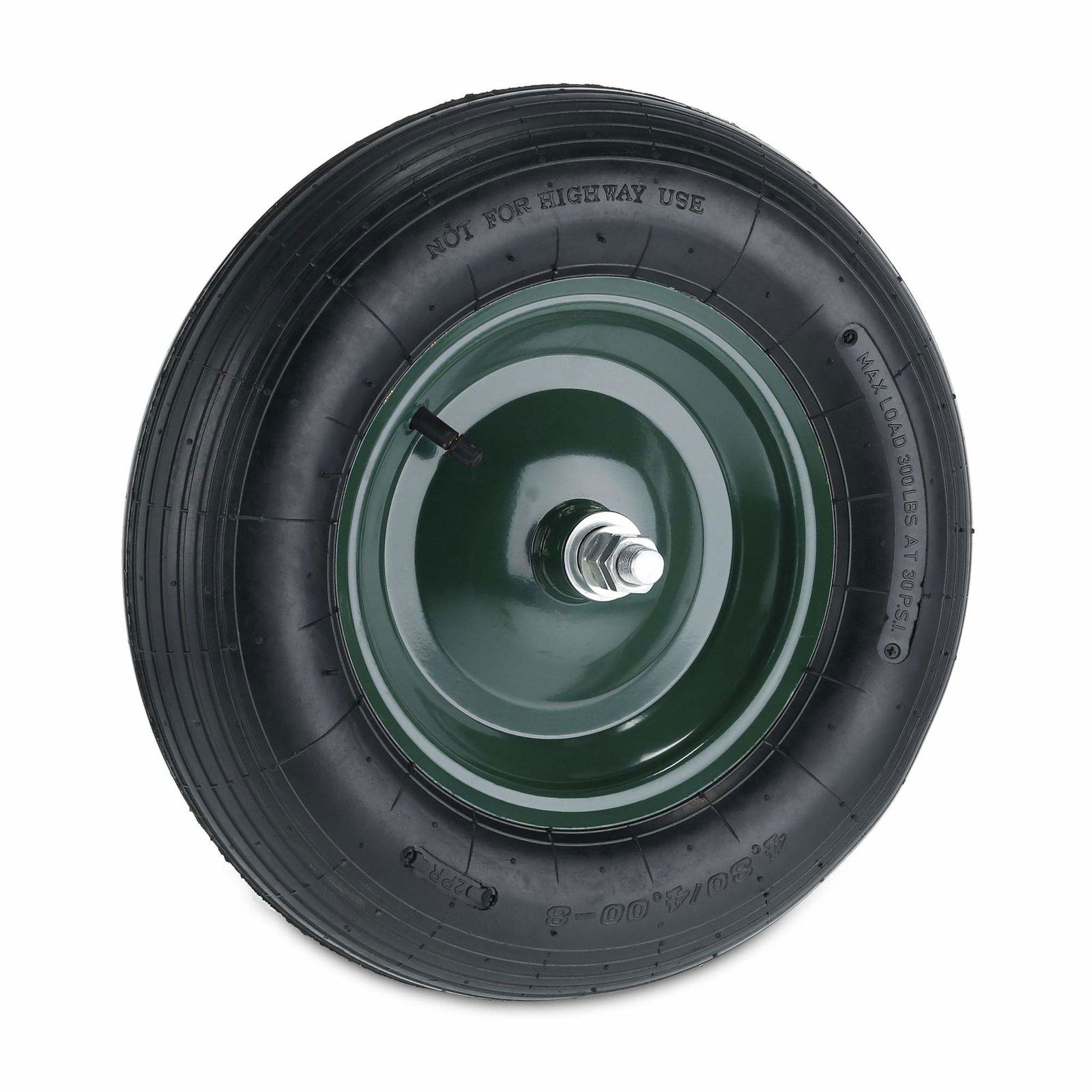 Relaxdays Skottkärrehjul 4,80 4,00-8, luftdäck, stålfälg, hjul med axel, reservhjul skottkärra, upp till 120 kg, svart, 39 x 39 x 9 cm
