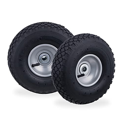Relaxdays säckkärra hjul 3,00-4, uppsättning av 2, luftdäck komplett hjul med stålfälg, för 16 mm axel, 100 kg, svart-grå