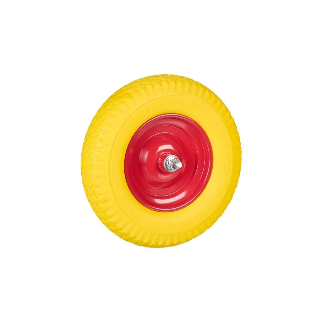 Relaxdays skottkärra hjul massivt gummi med axel, 4,80 4,00-8 gummihjul, punkteringssäker, 100 kg lastkapacitet reservhjul, gul-röd, 39 x 39 x 9 cm