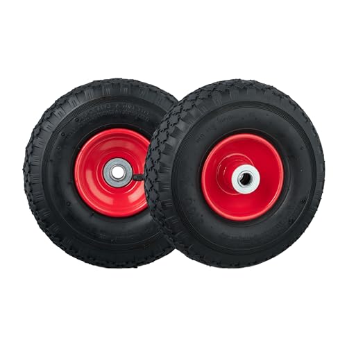 Relaxdays säckkärra hjul 3,00-4, uppsättning av 2, luftdäck komplett hjul med stålfälg, för 16 mm axel, 100 kg, svart-röd