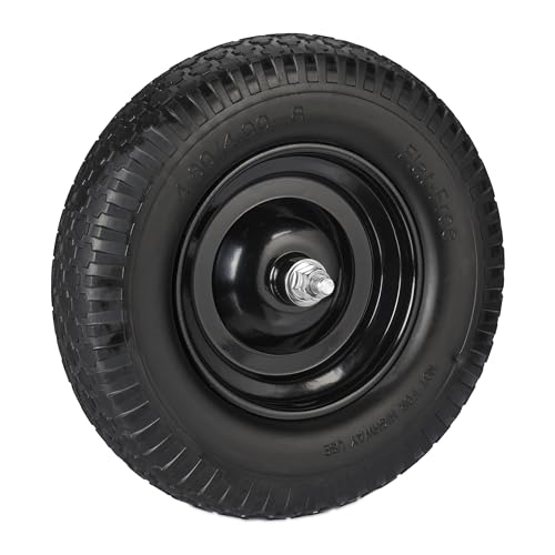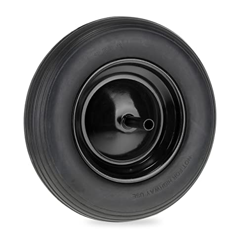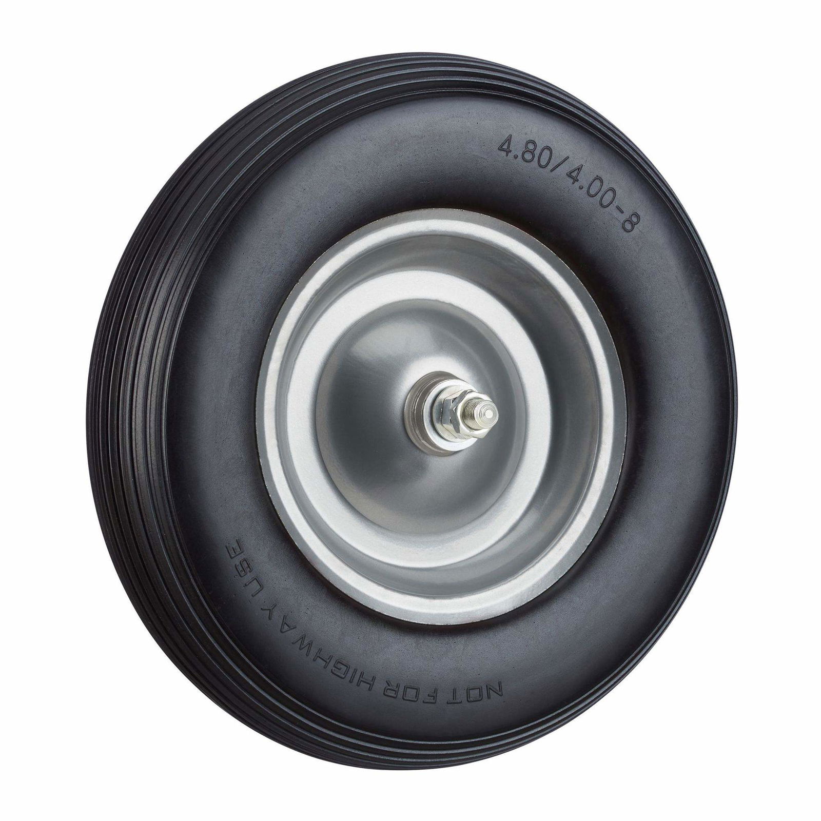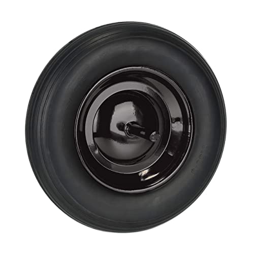 Arebos skottkärrhjul av punkteringssäkert PU-läder massivt gummi lastkapacitet 200 kg | däck med stålfälg | 4.80/4.00-8 | Reservhjul, gummihjul med axel | skottkärra hjul | diameter 390 mm | svart