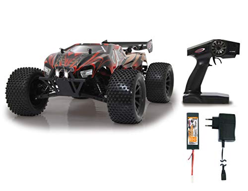 JAMARA 059740 – Brecter Truggy 1:10 BL 4WD Lipo 2,4 GHz LED – borstlös motor 3 200 KV, regulator 60 A, hjul bar, stål diffuser/axel/axel, elektronik stänksäker, oljestötdämpare, svart
