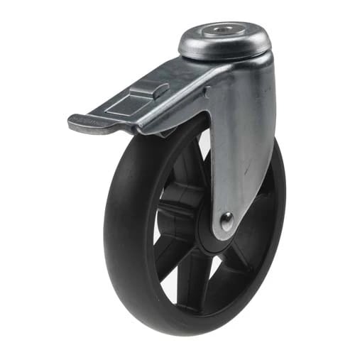 Toya Vorel Svängbart Hjul Med Svart Gummi, Broms Och Gängad Axel 160Mm 87335