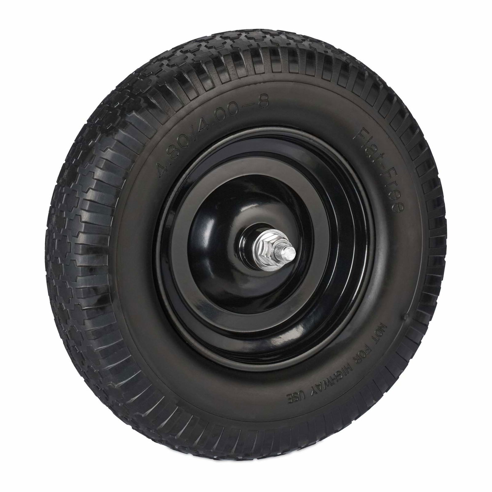 Relaxdays skottkärra hjul massivt gummi med axel, 4,80 4,00-8 gummihjul, punkteringssäker, 100 kg lastkapacitet reservhjul, svart