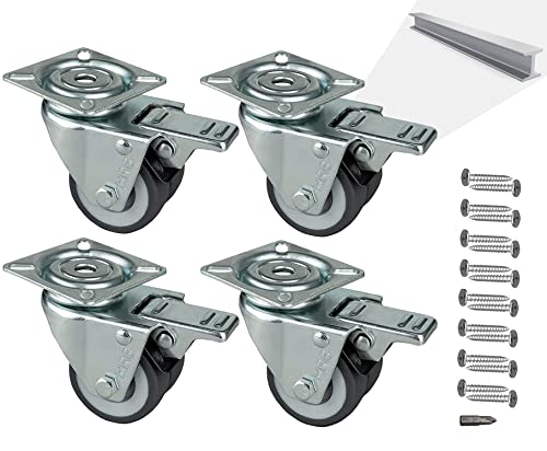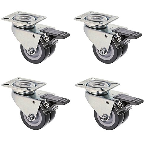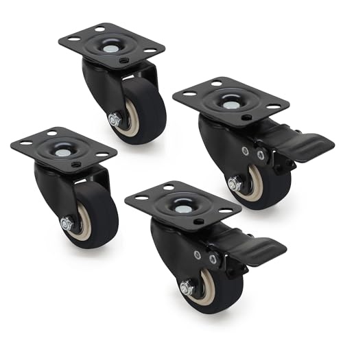Meditool 4 Svängbara hjul,75mm 400KG,Möbler Hjul,Roterande hjul för möbler med broms, med monteringsplatta, (Svart)