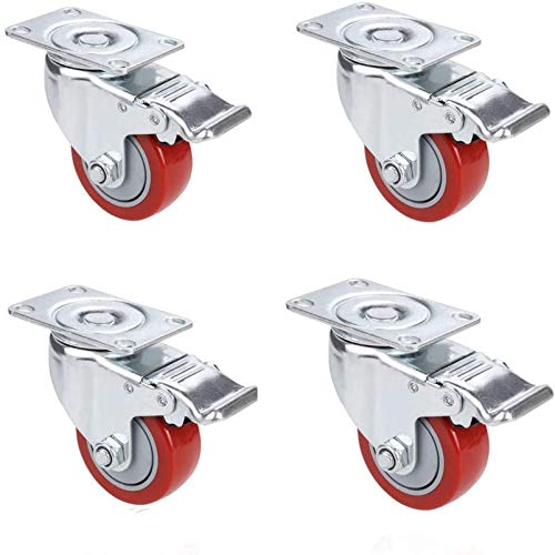 Voluker Svängbar hjul med broms 75 mm, gummihjul stöder max 400 kg, set med 4, röd