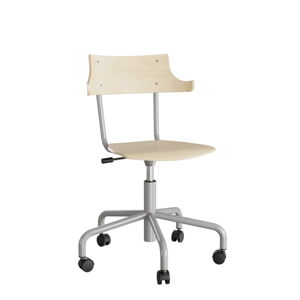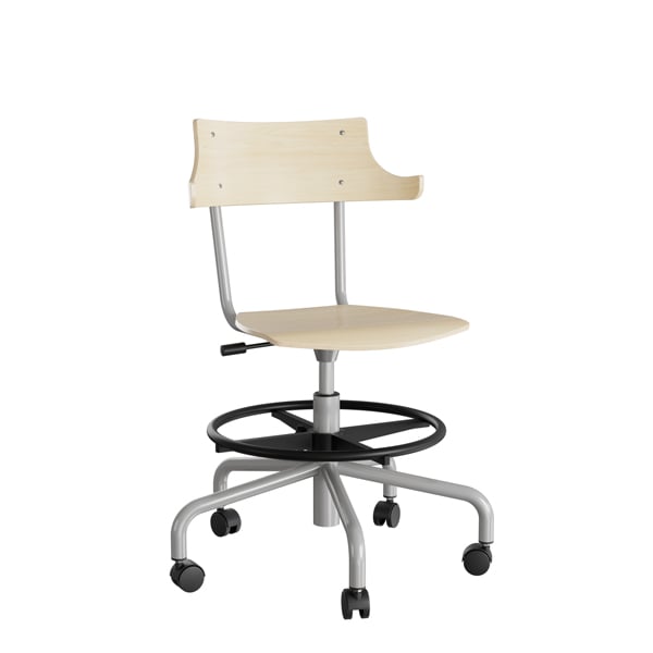 Stol Strong 113, björklaminat med silver stativ och hjul