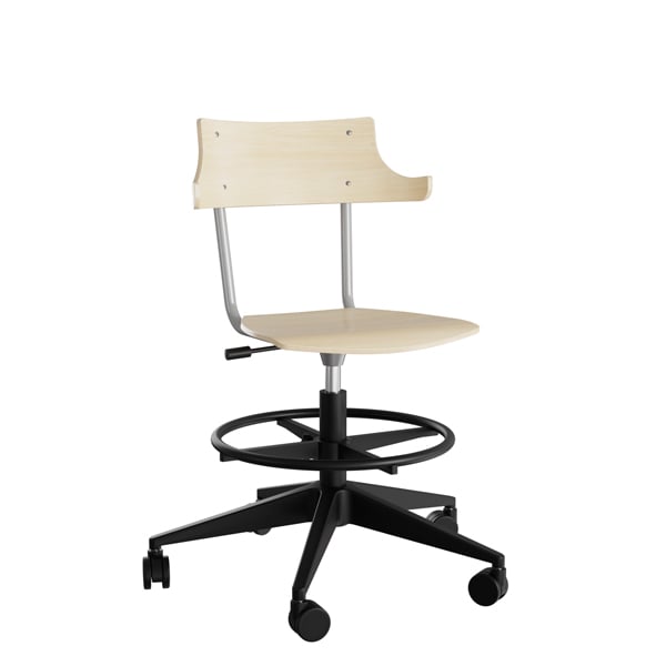 Stol Strong 113, björklaminat med svart stativ och hjul
