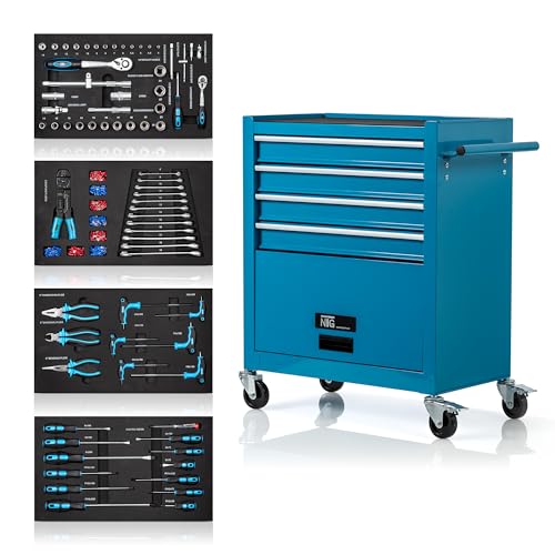 NTG Perfekt verkstadsorganisation, Verktygsskåp, Verkstadsvagn, Verktygsvagn, Inkluderar Verktyg 70 Stycken, 4 Lådor + Stort Fack, Kullager Lådor, Transportskydd, 2 Hjul Med Parkeringsbroms