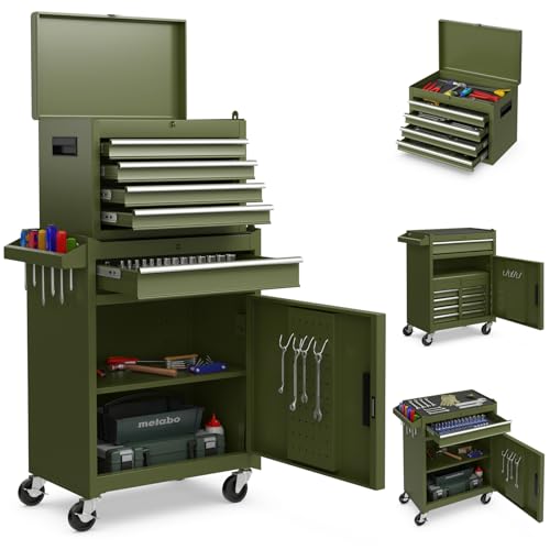 Fantaskk 2-i-1 verkstadsvagn 61,5 x 33 x 132 cm, verktygsvagn låsbar inkl. väska och 9 fack och krokar, professionell verkstadsvagn metall på hjul utan verktyg, svart och röd