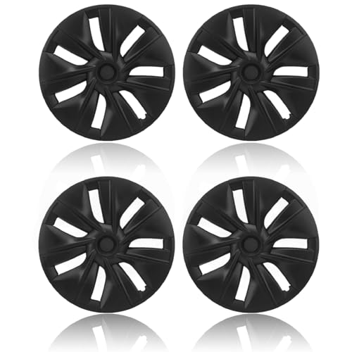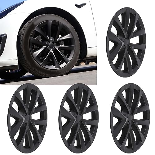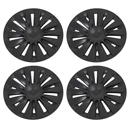 4st Hjulkapslar, 18 Tum Model S Plädstil Fullt Skydd Hjulfälgskydd med Stark Struktur, Ersättning för 2017 Till 2023 (matte svart)