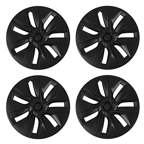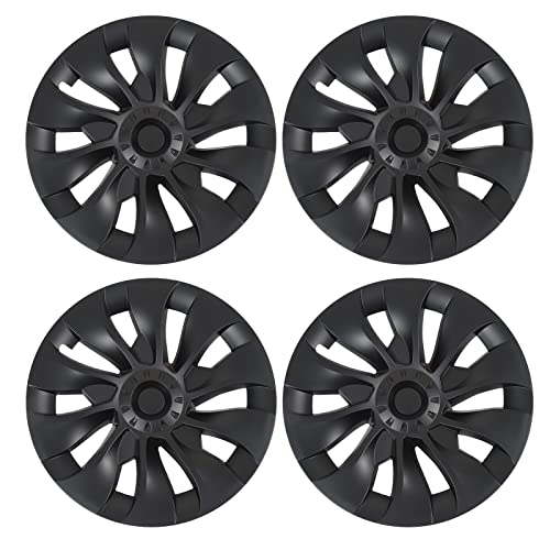 KAVANIC 4st Hjulkapslar Passar för Tesla Model Y 19 tum, Matt Svart Plast, Montering Med Ekerspännare