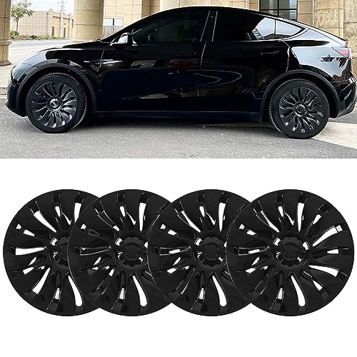 4st Navkapslar Kompatibla Med Tesla Model Y 2020 Till 2023 Hjulkapslar 19 Tums Blank Svart Hjulkåpa Hjulnavkapslar