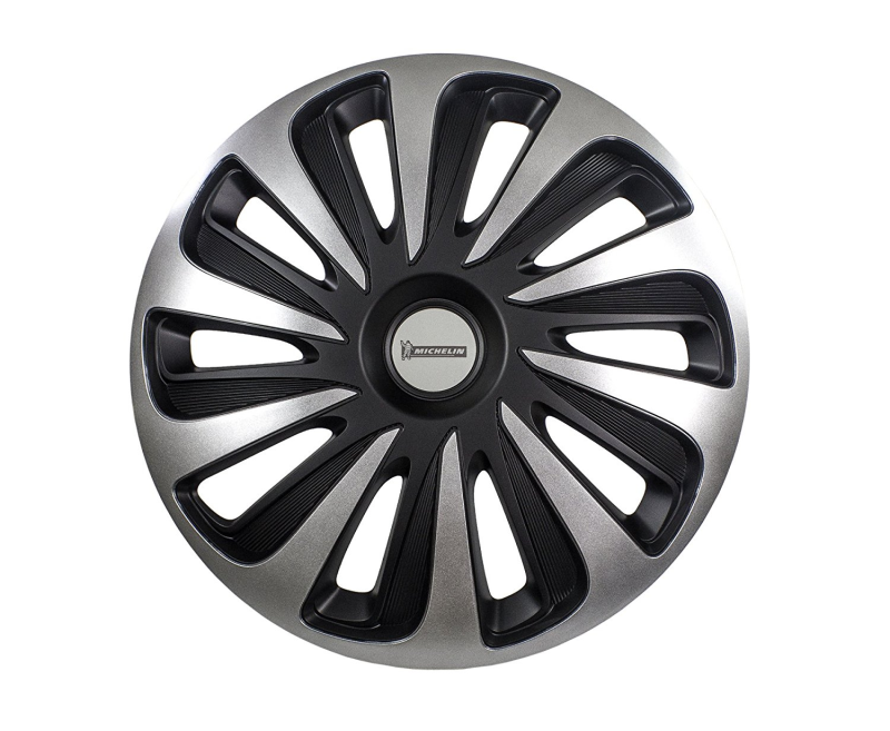 cartrend Hjulkapslar, flöde, 14 tum, för alla vanliga stålfälgar, tillverkade av speciell ABS kvalitetsplast, slagtålig, metallisk färg i två lager, övermålad, svartsilver, 4 stycken