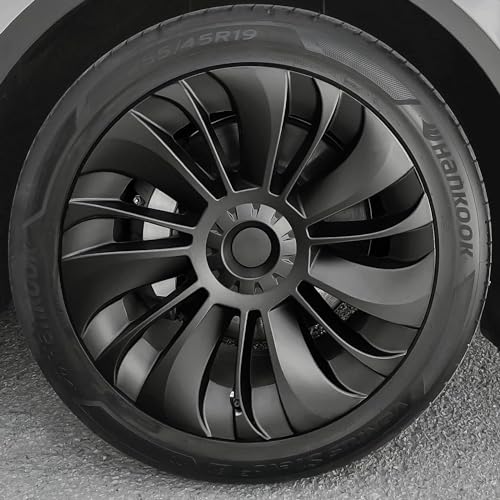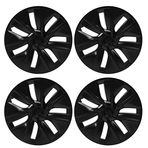KAVANIC 4st Navkapslar Passar för Tesla Model Y Navkapslar 19 tum Matt Svart Stödjer Logotyp Symmetrisk Design Blade Style 2020-2023 Model Y Gemini Hjulkapslar