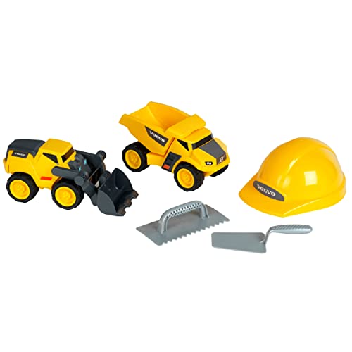 Theo Klein 2497 Volvo Power - Byggarbetsplats proffsset | Med tippvagn och hjullastare | Inkl. murarredskap och bygghjälm | Leksak för barn från 3 år