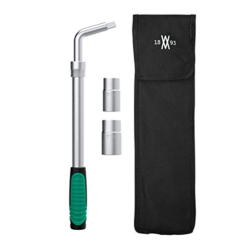 Teleskophjulmutternyckel, sats 4 delar Med 17/19 mm och 21/23 mm hylsor och hjulmutternyckel med utdragbart skaft I 0,5"-fyrkantsfäste I inkl. förvaringsväska från WIESEMANN 1893 I 80249